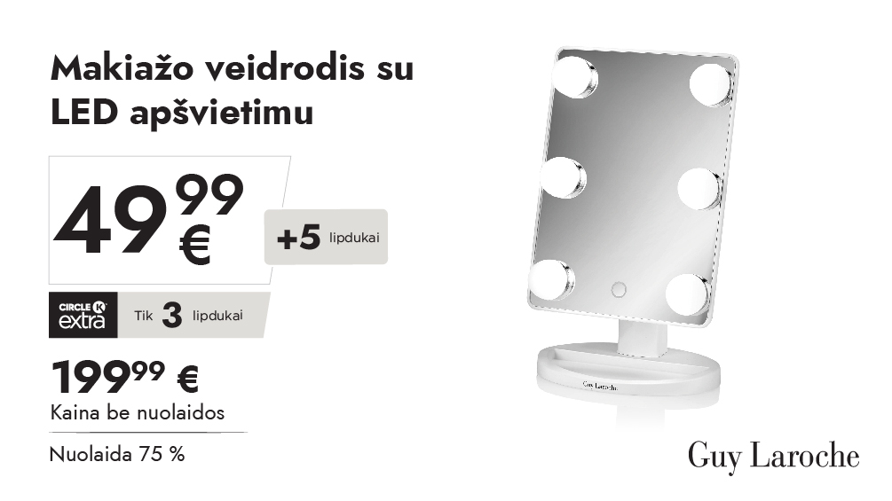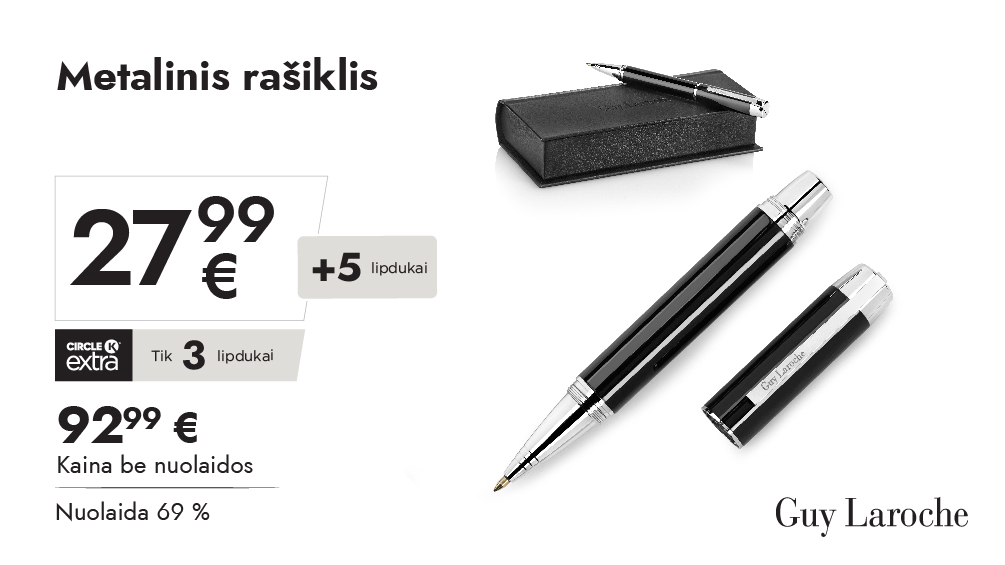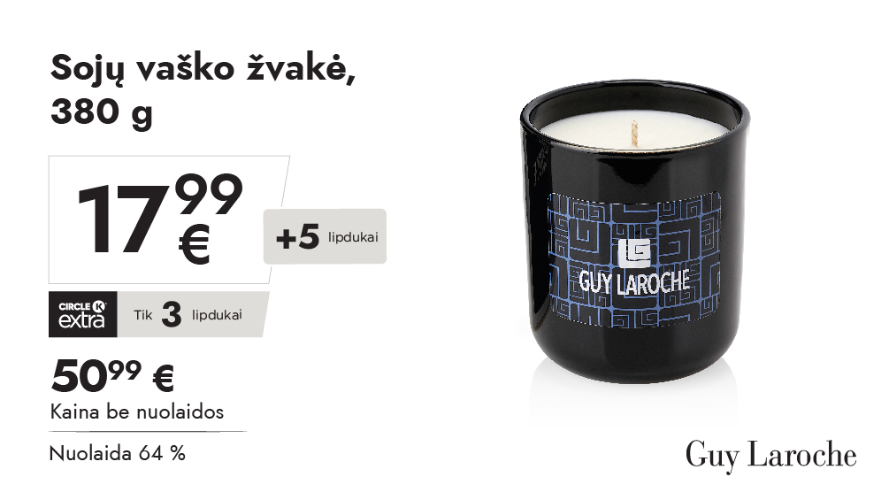 Image Image Guy Laroche akcija Guy Laroche aksesuarų kolekcija Kviečiame rinkti akcijos lipdukus ir įsigyti „Guy Laroche“ aksesuarų kolekcijos prekes iki 75% pigiau! Kiekvieną kartą, kai pilies degalų arba perki prekių degalinėse, gausi 1 lipduką už išleistą 7 € sumą. Surink reikiamą kiekį lipdukų ir gauk nuolaidą! Akcija galioja nuo 2022 m. sausio 25 d. iki 2022 m. balandžio 30 d. imtinai. Žaidimas 1. PIRKITE bent vieną GUY LAROCHE akcijos prekę 2. REGISTRUOKITE KVITĄ www.circlek.lt/glr-laimek 3. LAIMĖKITE metinę L'OFFICIEL žurnalo prenumeratą Dalyvauti Vandens butelis, 500 ml Kortelių dėklas-piniginė Rankšluosčių rinkinys, 3 dalių Kosmetinė Chalatas Metalinis rašiklis Sojų vaško žvakė, 380 g Namų kvapas su lazdelėmis, 500 ml Makiažo veidrodis su LED apšvietimu Chalatų išmatavimai Previous slide Next slide „Guy Laroche“ akcijos taisyklės File Guy Laroche akcijos taisyklės
