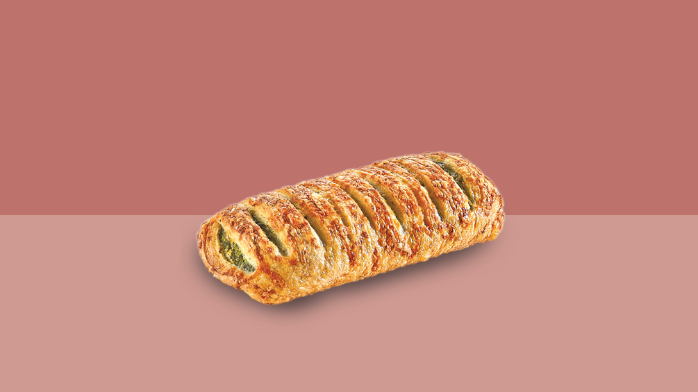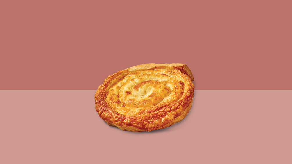 Sloksniuotos tešlos, viduje drėgnas, o išorėje - ypač traškus pyragėlis gali pradžiuginti net dviejų rūšių sūriais - viršuje apkeptu gaudos sluoksniu ir lengvu, viliojančiu mocarelos sūrio įdaru.